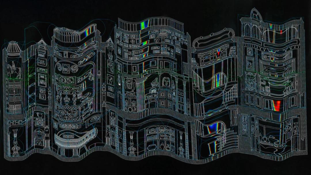 《Facade top model》 lineament,luma,drawing,video, 2024, Hitoki Keino